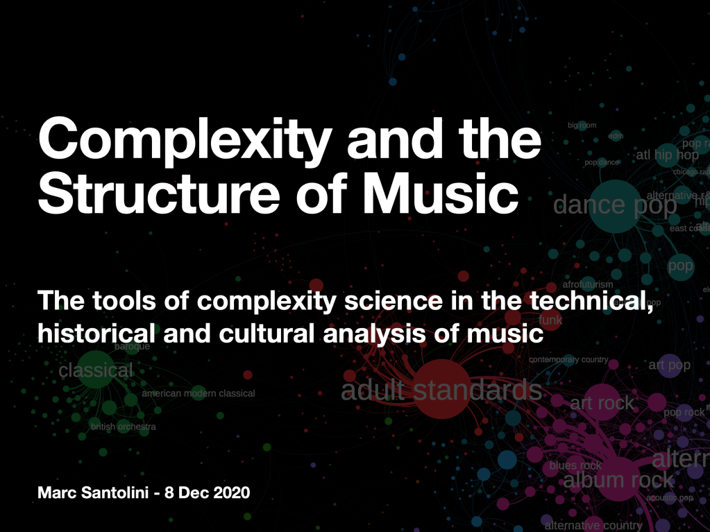 I had the pleasure of joining a panel at the Santa Fe Institute’s Complexity and the Structure of Music Working Group, where we explored how tools from complexity science—network theory, statistical mechanics, and cultural analysis—can help us better understand the structure and evolution of music. In my talk, I shared perspectives on how music can be studied as an emergent, self-organizing system, bridging technical patterns with human perception.