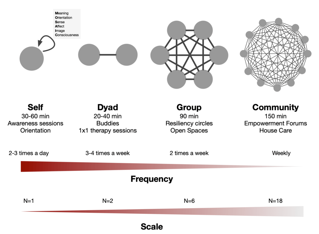 We present the “Relational Embodiment” residency as a case study: a two-week experimental setting designed to foster attunement across scales. From morning meditation to facilitated group sessions and community co-care, each layer acts as a developmental scaffold. Our systems lens suggests that such containers—when well-designed—can become generative infrastructures for collective intelligence and transformation.